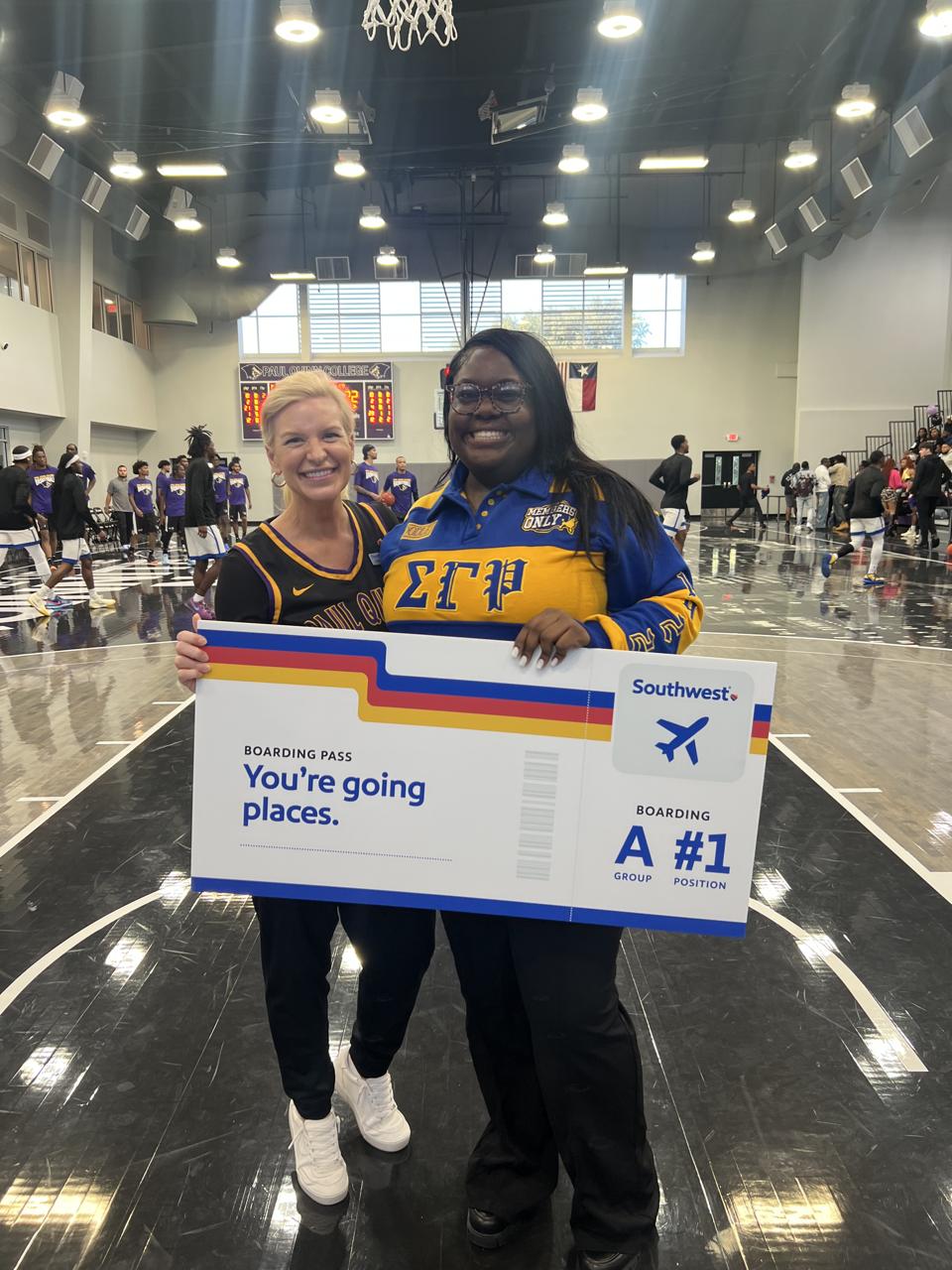 Southwest Airlines brought a little extra joy to the men’s and women’s basketball games with a free throw contest for students. Two lucky students received two roundtrip flights anywhere Southwest flies.